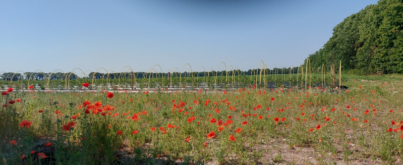 Heel veel en oneindig onkruid wieden, zorgen maken over de suzukii fruitvlieg, water druppelen (maar hoeveel en hoelang?), een anti-vogel systeem bedenken met 'n net waarvan ze zeggen dat het hagelbuien opvangt, hopen dat er überhaupt geen hagelbuien vallen of harde wind komt ...